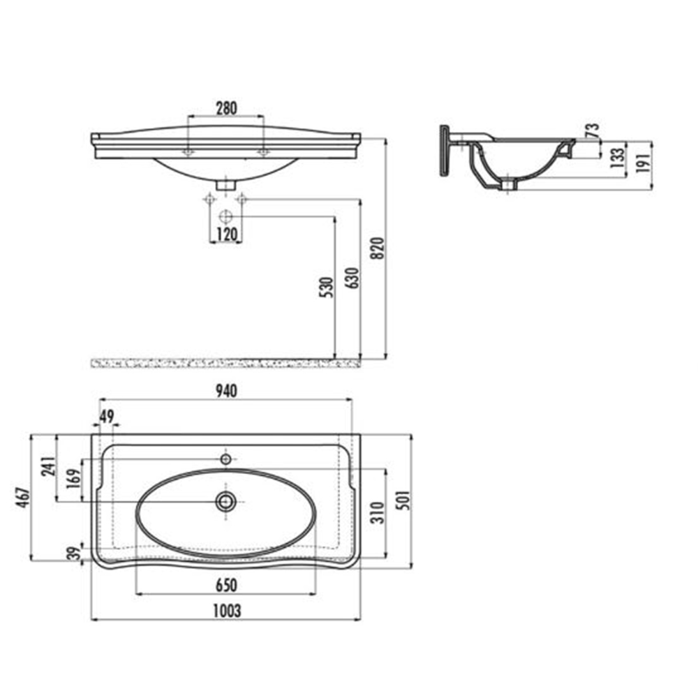 Anasayfa/VİTRİFİYE/LAVABO/MOBİLYA UYUMLU LAVABO/ANTİK ETEJERLİ 100 CM LAVABO