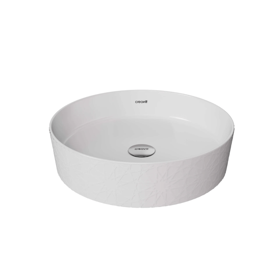 40 cm çapında dairesel tezgah üstü lavabo. Görseldeki lavabo bataryası ürüne dahil değildir.