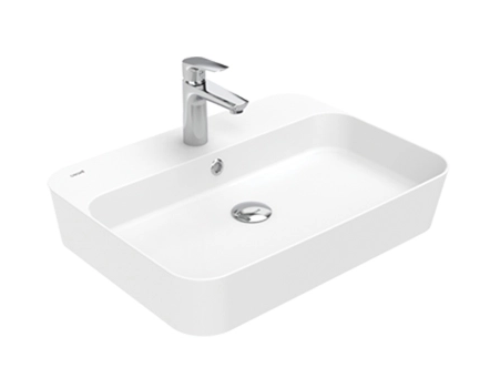 Loop serisi modern dikdörtgen formda tezgah üstü lavabo. Görseldeki lavabo bataryası ürüne dahil değildir.