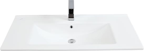 Geniş kullanım alanlı 100 cm etejerli lavabo. Görseldeki lavabo bataryası ürüne dahil değildir.