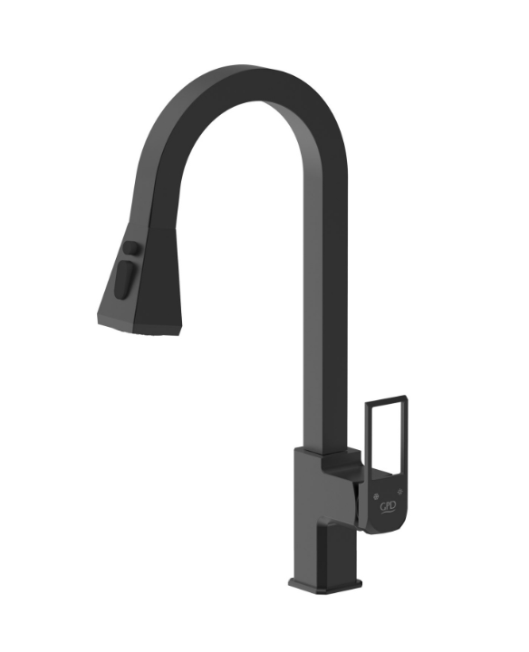 Çıkarılabilir spiralli el duşu ile mat siyah Quadro mutfak bataryası.