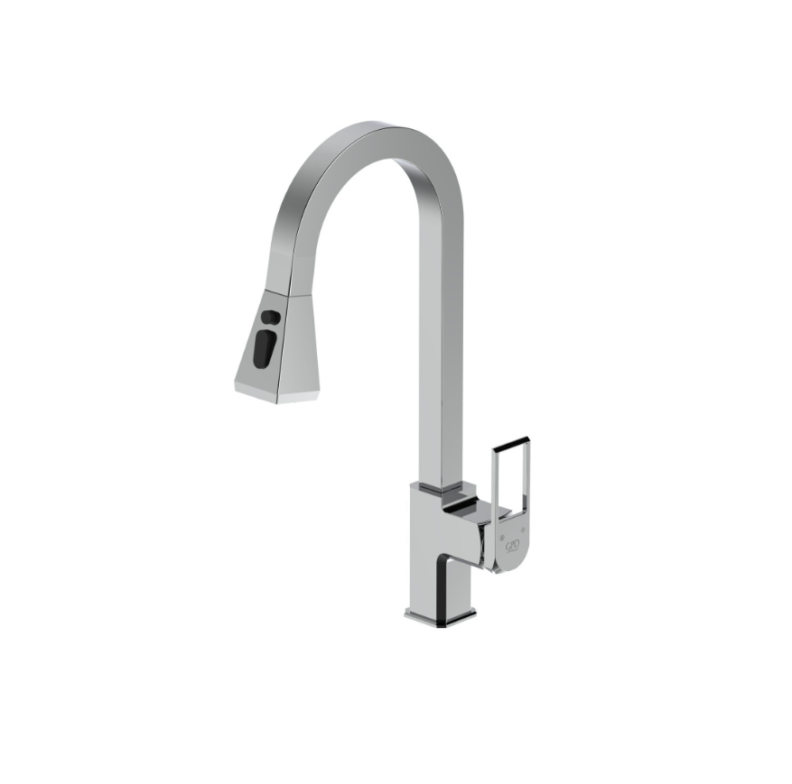 Spiralli el duşlu, krom Quadro mutfak bataryası.