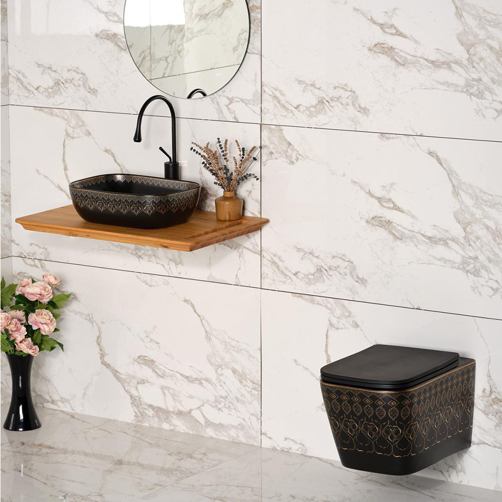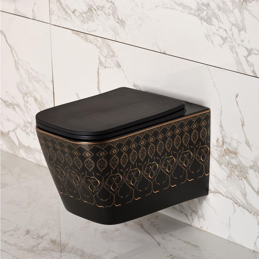 MAT SİYAH ALTIN ASMA KLOZET VE KAPAK